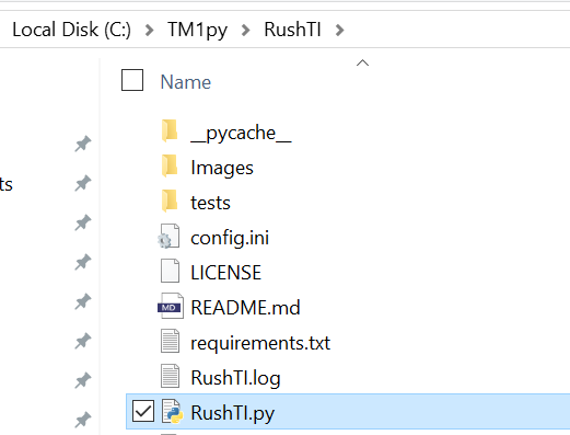 In this example we downloaded RushTI and put it on the C:TM1pyRushTI folder: