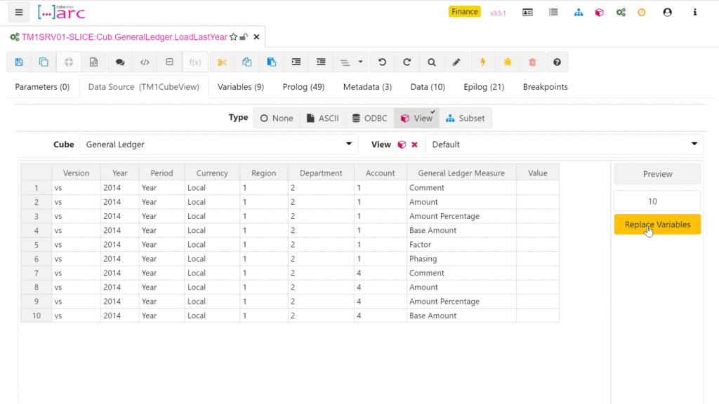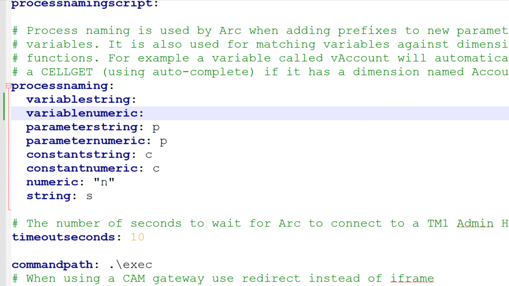 Process naming is used by Arc when adding prefixes to new parameters and variables. It is also used for matching variables against dimension in CELLGET and CELLPUT functions. For example a variable called vAccount will automatically be inserted into a CELLGET (using auto-complete) if it has a dimension named Account.