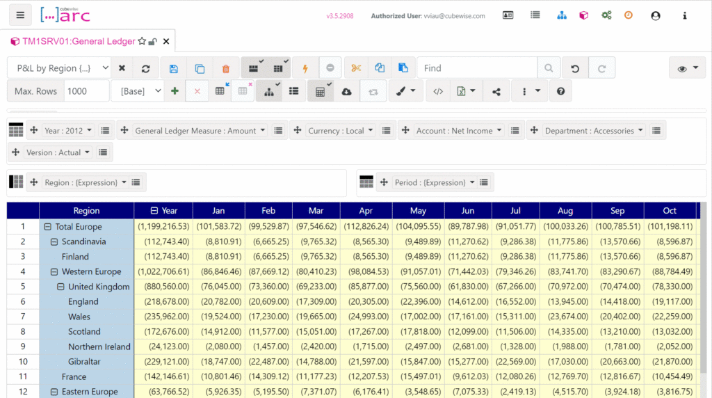 Arc supports now UDC (User Defined Consolidation) in the cube viewer. When looking at a cube view, you can select elements and create a virtual consolidation on rows, columns and titles. This consolidation is calculated on the fly. This roll-up can be created in the subset editor or directly from the cube view with the right-click menu: