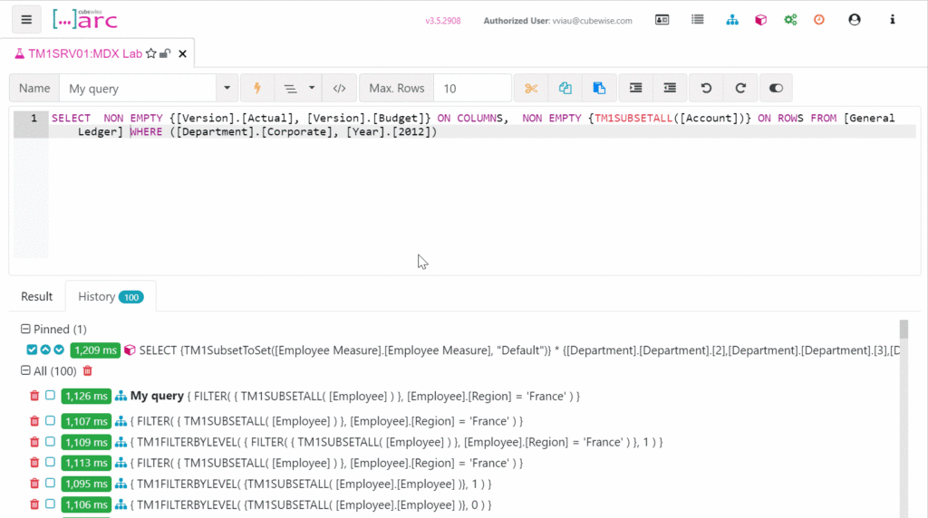 Arc supports now UDC (User Defined Consolidation) in the cube viewer. When looking at a cube view, you can select elements and create a virtual consolidation on rows, columns and titles. This consolidation is calculated on the fly. This roll-up can be created in the subset editor or directly from the cube view with the right-click menu: