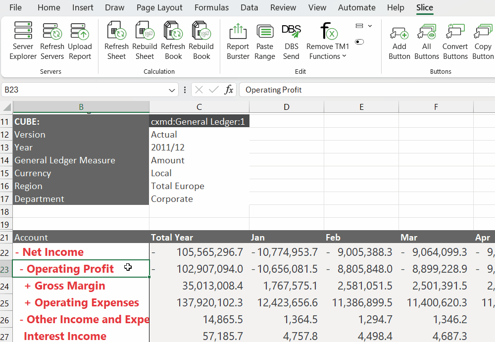 On top of expanding and collapsing dimensions on rows, you can now drill to another dimension. For example, you can drill from the Account dimension to the Region dimension