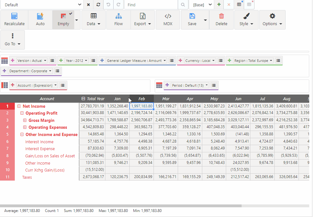 From a cube view, you can now hide particular columns and rows. This feature is great to focus on a particular part of the cube view. To hide a column or a row, right-click on the column or row header and select the hide option. To unhide a column or a row, click on the column or row header and select the unhide option.