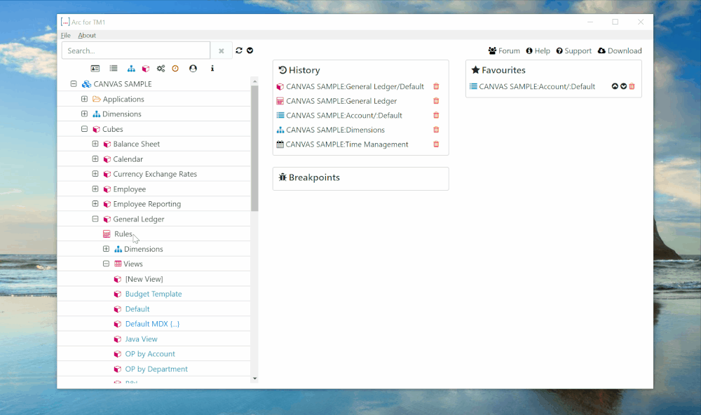 Arc v0 (beta) was focused on improving the existing features that a TM1 developer needs such as the Process and Rules Editor.  It also added a debugging feature to help you step through your code while it is being executed.