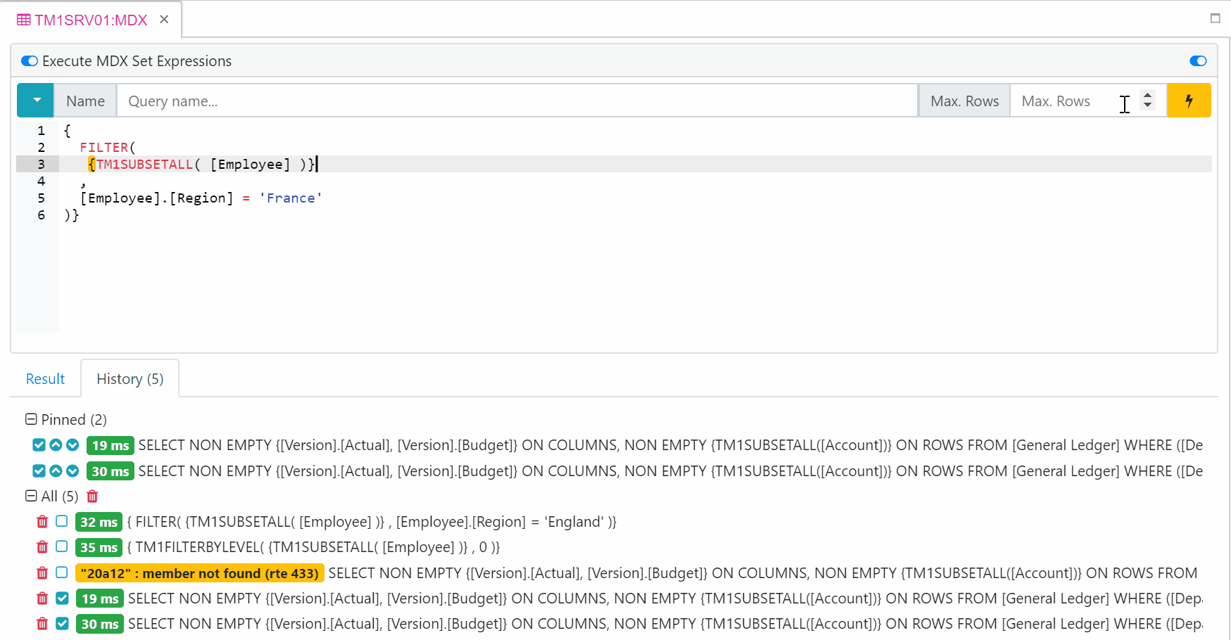 The MDX and REST API plugins store all your previous queries in your browser. You can even pin at the top your favourites: