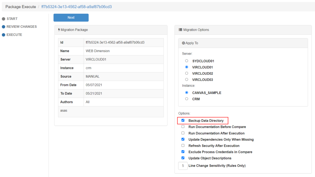 When ticked Pulse will first run a Save Data All then create a zip file of the whole data directory. This provides backup in case the migration fails.