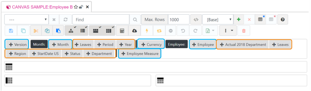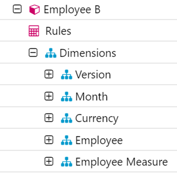 To illustrate the power of Slice, let’s look at how you can create an Active Form with hierarchies. In this example, we’re going to use the Employee cube which has 5 different dimensions: ‘Version’, ‘Month’, ‘Currency’, ‘Employee’, and ‘Employee Measure’.