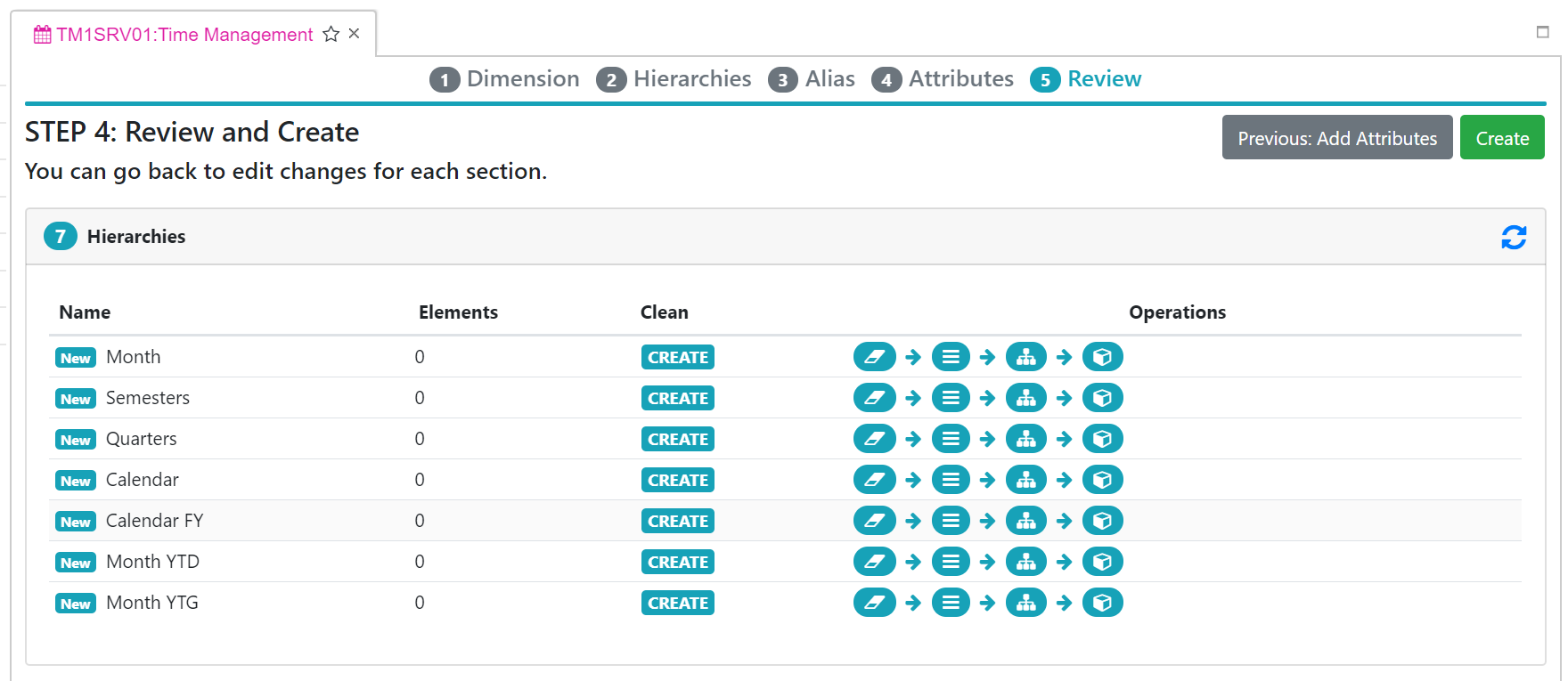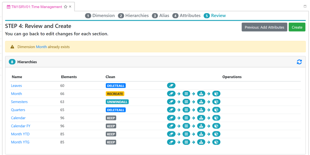 If the dimension already exists, in the Clean column, you can choose which action to apply to the hierarchy: