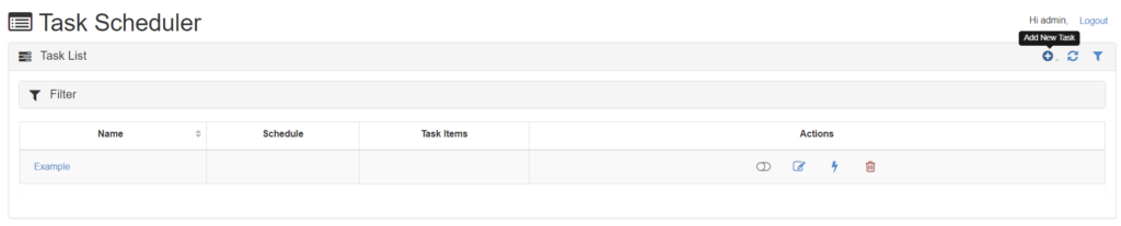 In this page you will see the list of tasks. Click the Add New Task button at the top right: