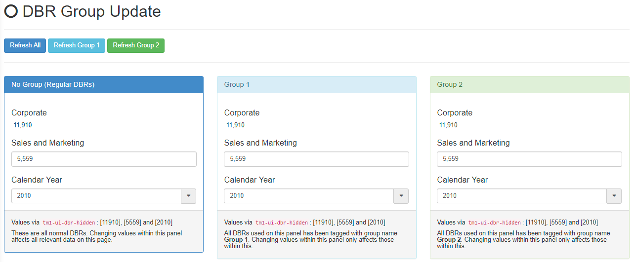 You can now make your page even more responsive by grouping your DBRs so they do not all refresh when you input a value into one DBR.