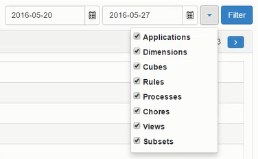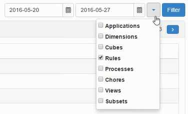 In Change Tracking, you are now able to filter by TM1 object type. Go to Change Tracking then Change History and click on your TM1 instance: