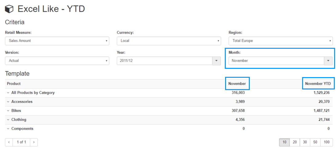 That’s it, now you can pick a month and in the same table, you will see the monthly and YTD value: