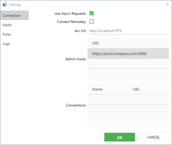 Connect Remotely: Tick to connect Slice a a remote Arc server