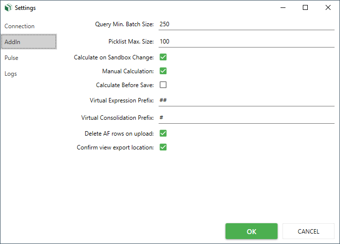 Recalculate First Sheet: Useful when configuration values, such as the TM1 Server Name are present on the first worksheet