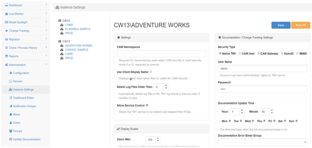Pulse has built-in security to ensure that only the appropriate people have access to view sensitive information and to update the Pulse database. The default Pulse requires TM1 credentials so it can log into each TM1 instance to extract information.