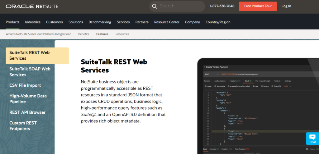 RESTlet: A simple and minimalistic REST API that offers custom REST endpoints to execute defined scripts within NetSuite.