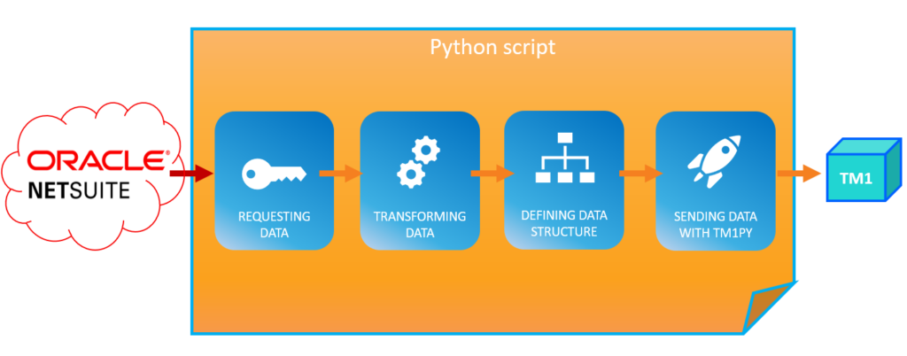 Thanks to TM1py, there is no limit to ways to connect IBM Planning Analytics (TM1) with any data source on cloud or on-premise. This article explains the logic to write a Python script to connect Oracle NetSuite with TM1. The only thing you will need is one Python script.