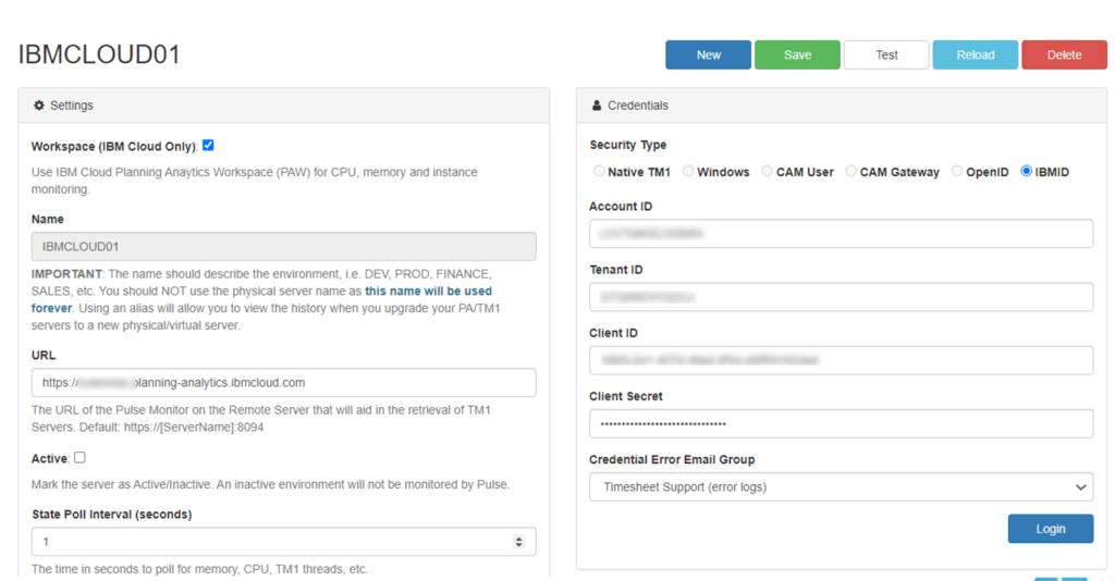 Pulse will use this IBM ID to connect to all TM1 instances. By default Pulse will connect to all TM1 instances in this PA SaaS environment with the same IBM ID.
