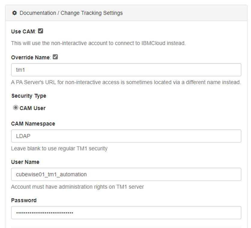 To use the non-interactive account, go to Administration > instance settings then tick the option Use CAM and enter the following information:
