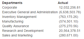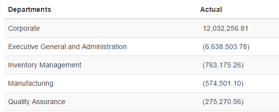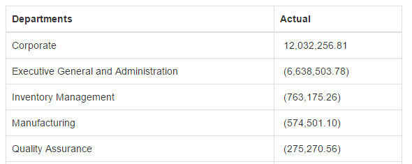 The table will have only 2 columns Departments and Actual: