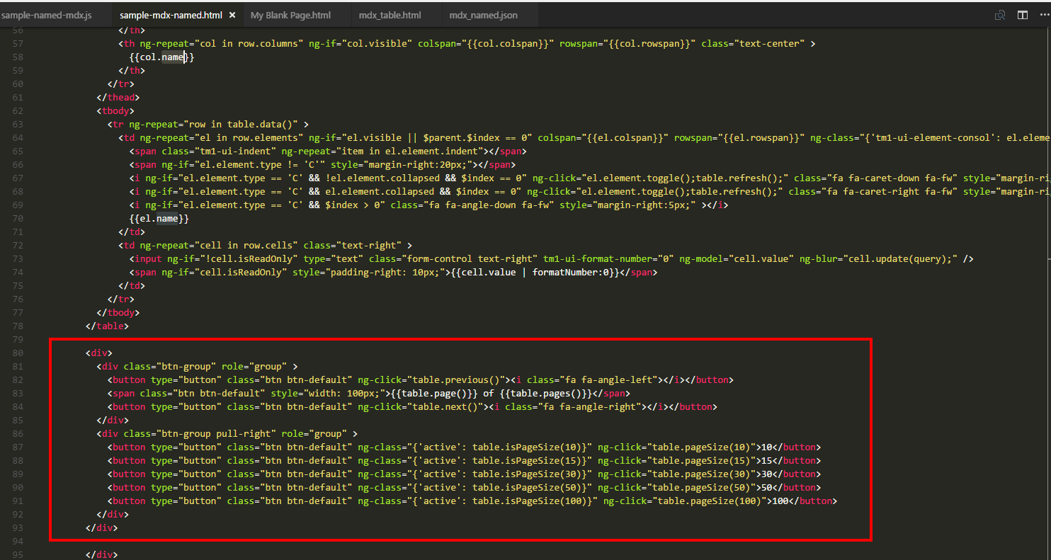 To customize the look of the tm1-ui-table-mdx such as removing the pagination, you’ll need to update the code behind the tm1-ui-table-mdx. You can find an example in the samples called Named MDX: