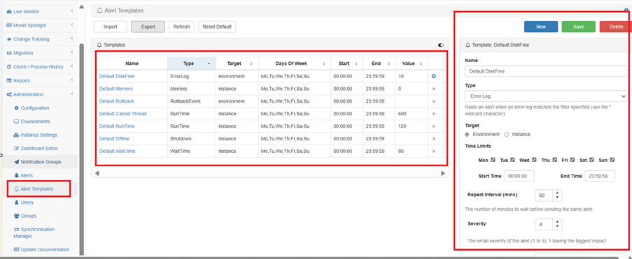 To reset alert types and templates to the default settings, click Reset Default. This will revert all configurations to their original values.