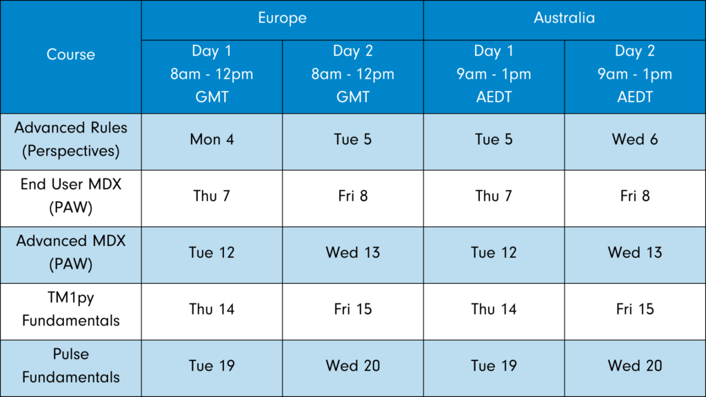 Whether you’re new to IBM Planning Analytics or aiming to advance your skills, we offer options to upskill yourself, your team, or your entire organisation. Explore our educational options here: Link
