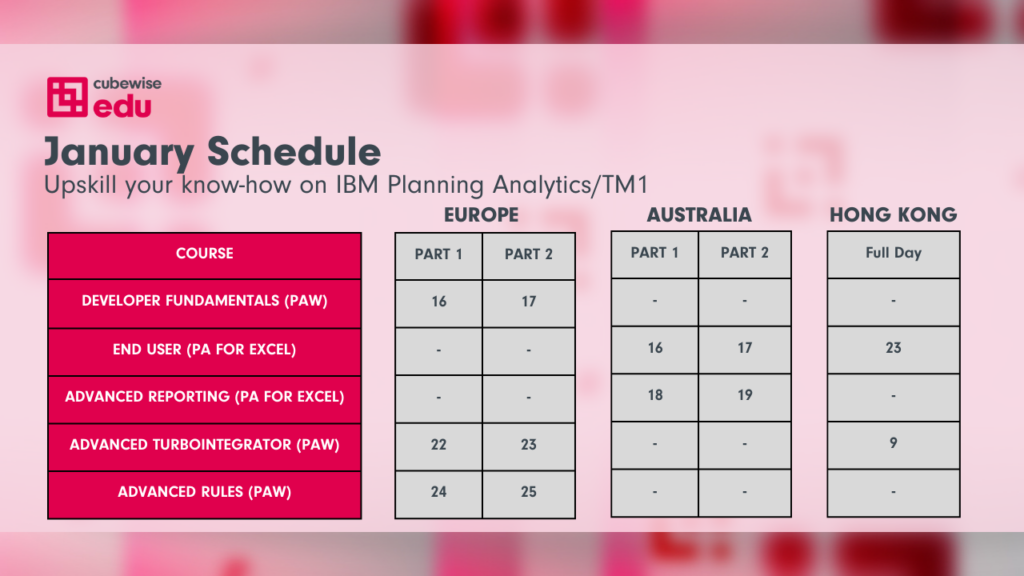Upskill your know-how on IBM Planning Analytics/TM1, through our consultant-led training.