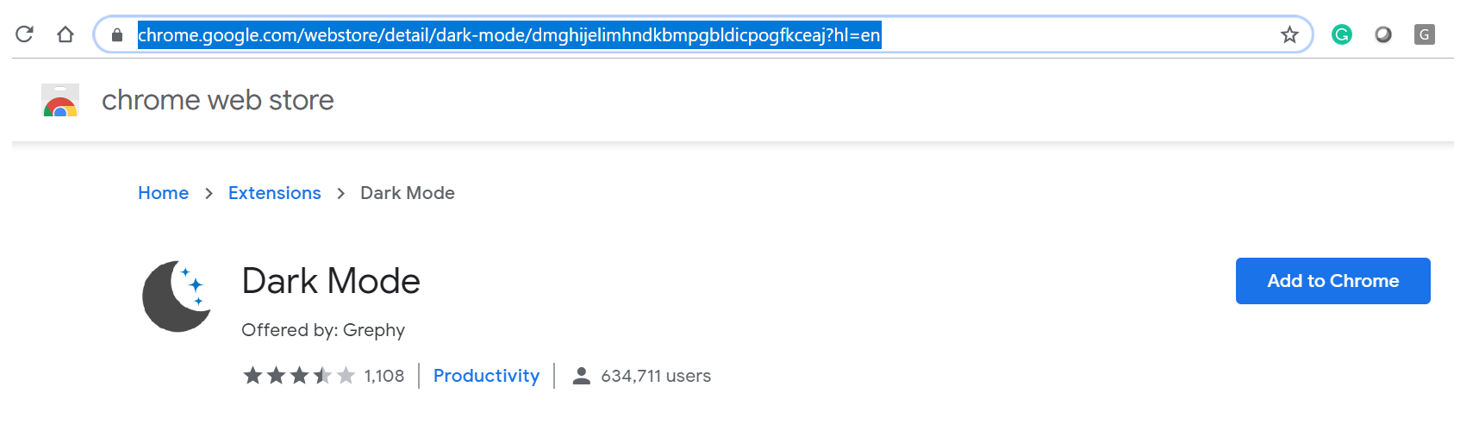 Download Google Chrome extension – Dark mode