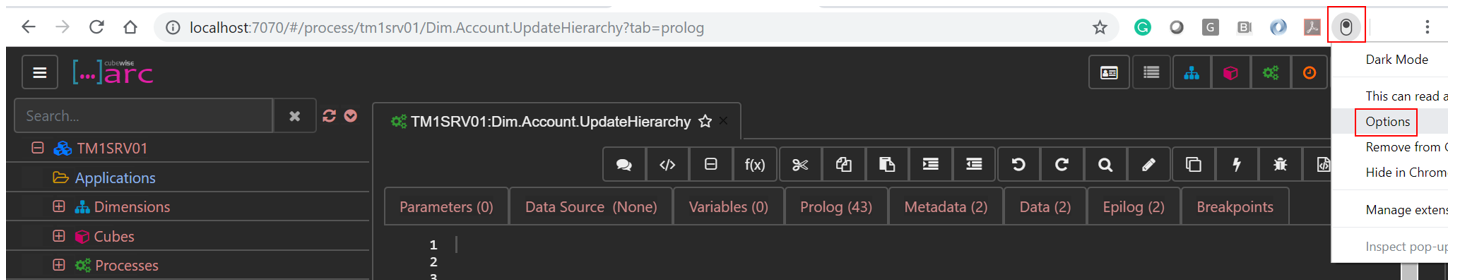 Once added as an extension, to update the default Dark mode theme, you will need to go to options. To access the Dark mode options, just right click on the Dark mode icon and click Options.