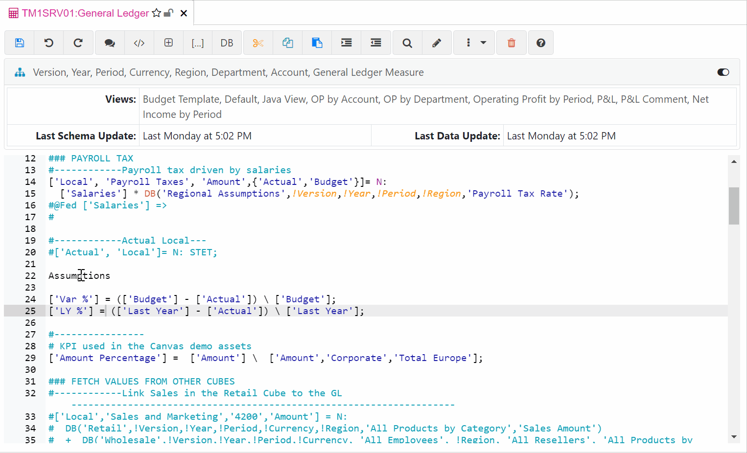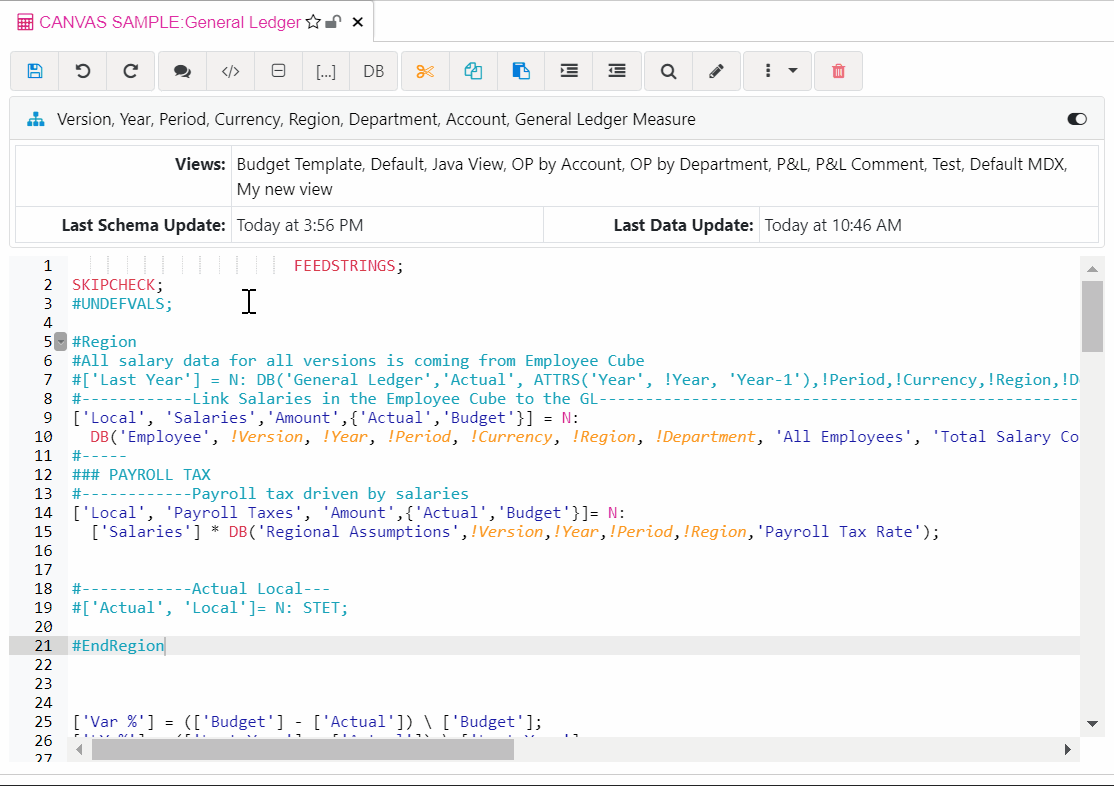 The Create DB button enables you to add quickly a DB function from any cube. It is going to pre-fill the variables with the cube dimensions.