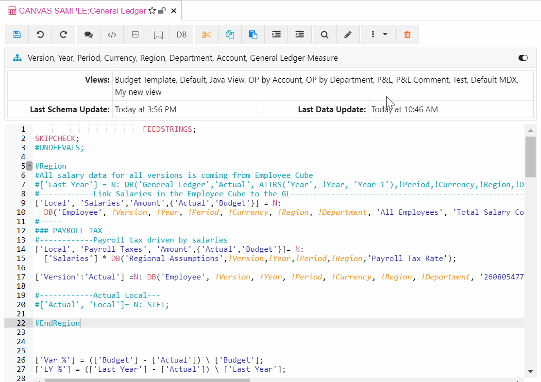 The Create DB button enables you to add quickly a DB function from any cube. It is going to pre-fill the variables with the cube dimensions.