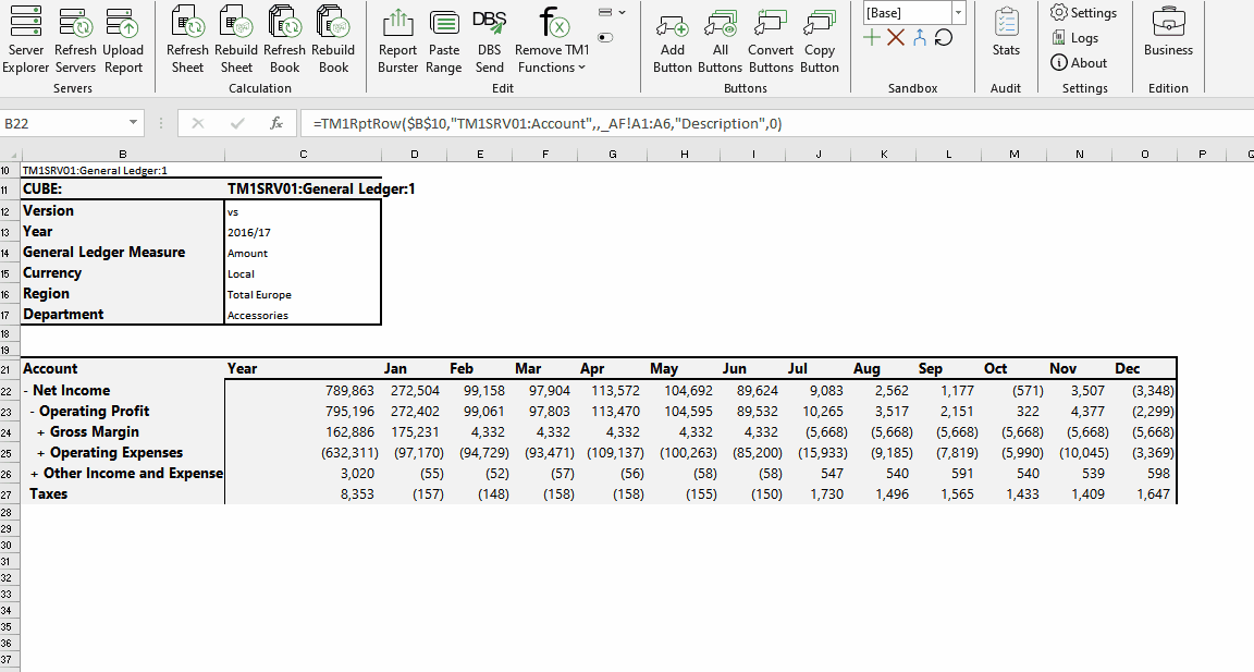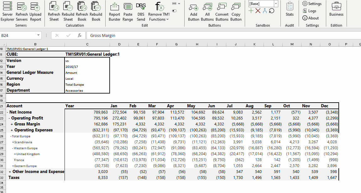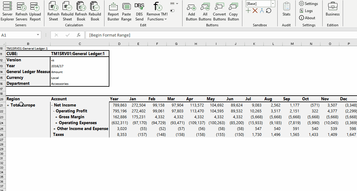 Let’s look at the following example; you have a standard flash P&L report and you may want to breakdown the account information by region but only for a specific account. what are your options in an Active Form report?