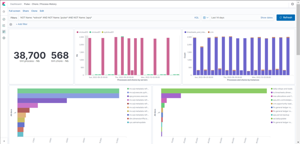 The information you see in the Chore and Process history feature of the Pulse Web client is coming from the Pulse Elasticsearch data: