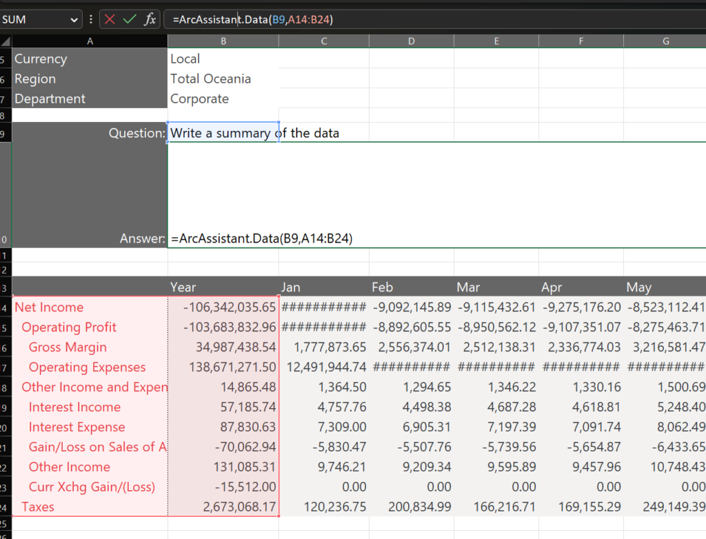 v4.1.0 introduces the Arc Assistant. You can ask any question you like to the Arc Assistant through Slice by using a new function ArcAssistant.Data.