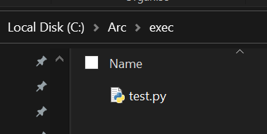In the root directory of Arc (where arc.exe is) create exec directory.