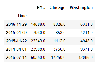 We execute the following code to create a dataframe (we call it: df_w) based on the cubeview 2014 to 2017 Average by Day of the Weather Data cube: