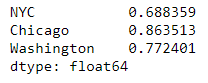 As one would expect, the bike shares by day across our three cities are all strongly correlated.