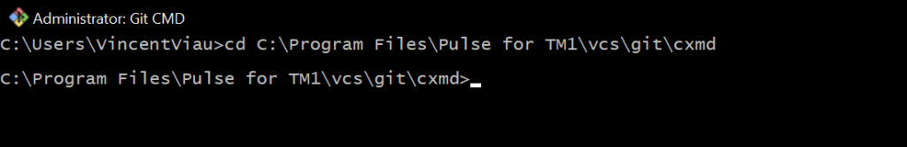 cd C:Program FilesPulse for TM1vcsgitcxmd