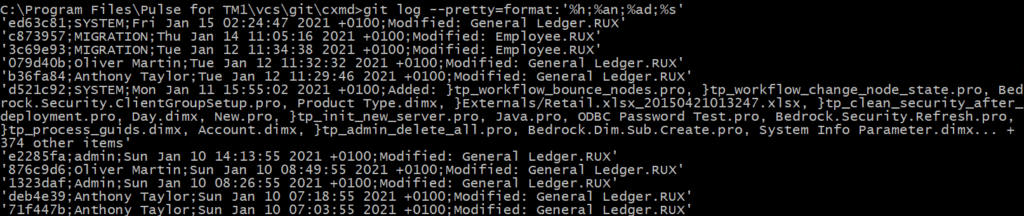 All the changes are stored by Pulse in the Pulse for TM1vcsgit folder. There are many commands that can help you to export this data.