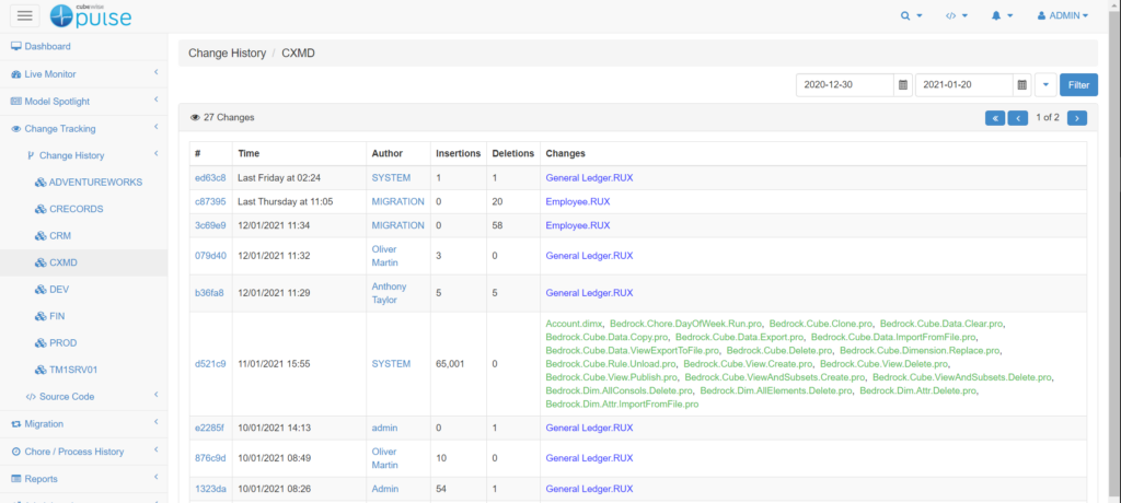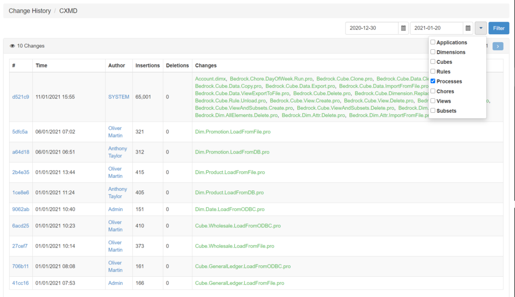 Navigate to the GIT folder for the TM1 instance you are interested in. For example, if you want to see changes for the CXMD instance: