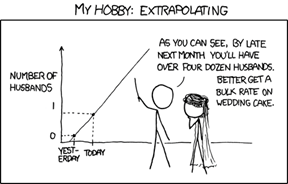 That XKCD comic nails a common error in forecasting: drawing a straight line from yesterday to tomorrow and calling it predictive. Real foresight requires more than extrapolation.