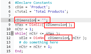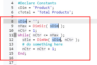 In this example we choose the snippets: “While loop through dimension”: