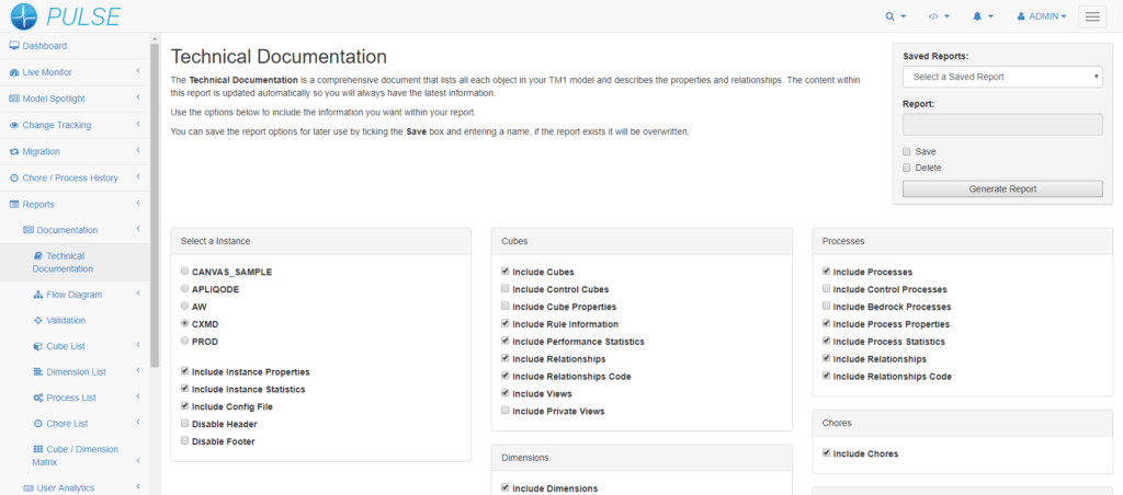With the Pulse Technical Documentation, you will be able to see the relationships between your IBM TM1 and Planning Analytics objects, as well as information about views and subsets to give you a full picture of what the model contains.