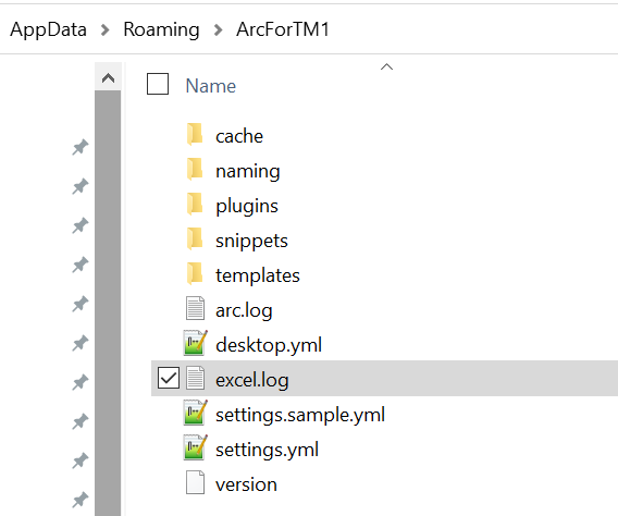 Logs folder location is in the %Appdata% folder, C:Users<UserName>AppDataRoamingArcForTM1excel.log
