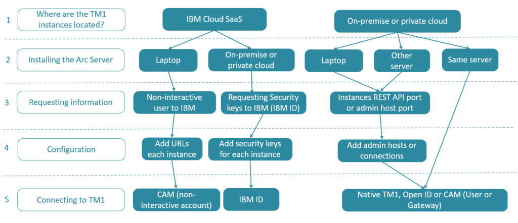 When Arc is installed on the TM1 server, installing Arc is very straightforward as it will auto-detect the TM1 instances. However when Arc is installed on a separate server (or laptop) or TM1 instances are hosted on the IBM Cloud SaaS, the installation requires more steps: