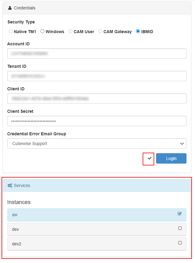 Then click on the Login button and enter your IBM ID. The IBM ID needs to be a TM1 admin on the TM1 instances.