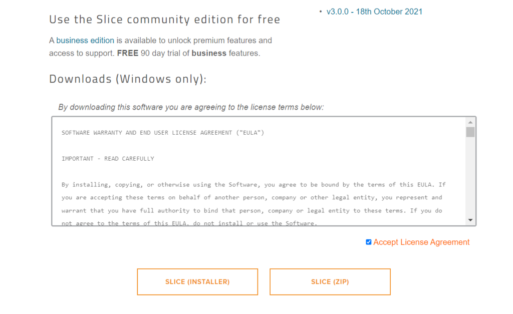 Once the installer is downloaded just run as administrator the installer slice.x.x.x.exe and go through the installation steps.