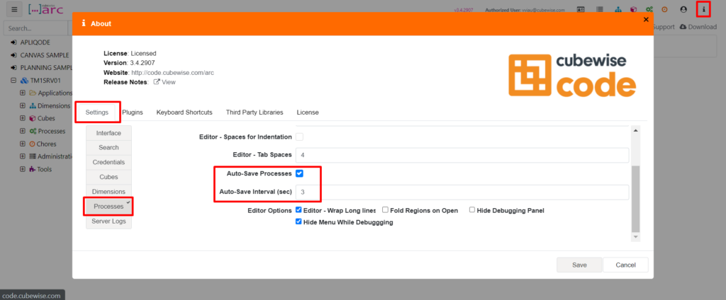 To enable this feature, go to About and in the Settings tab click on Processes, tick the option Auto-Save Processes, and select the interval in seconds. In the example below, Arc will save the process you are working on every 3 seconds: