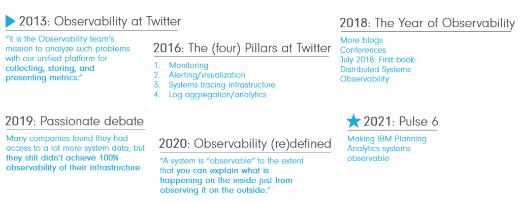 Twitter was the first major company to fully embrace observability in 2013 and they really led the way in this regard, making it a key component of their IT infrastructure. As other companies saw the value that this context provided, it slowly become an industry standard that is used on a regular basis.
