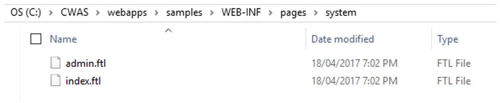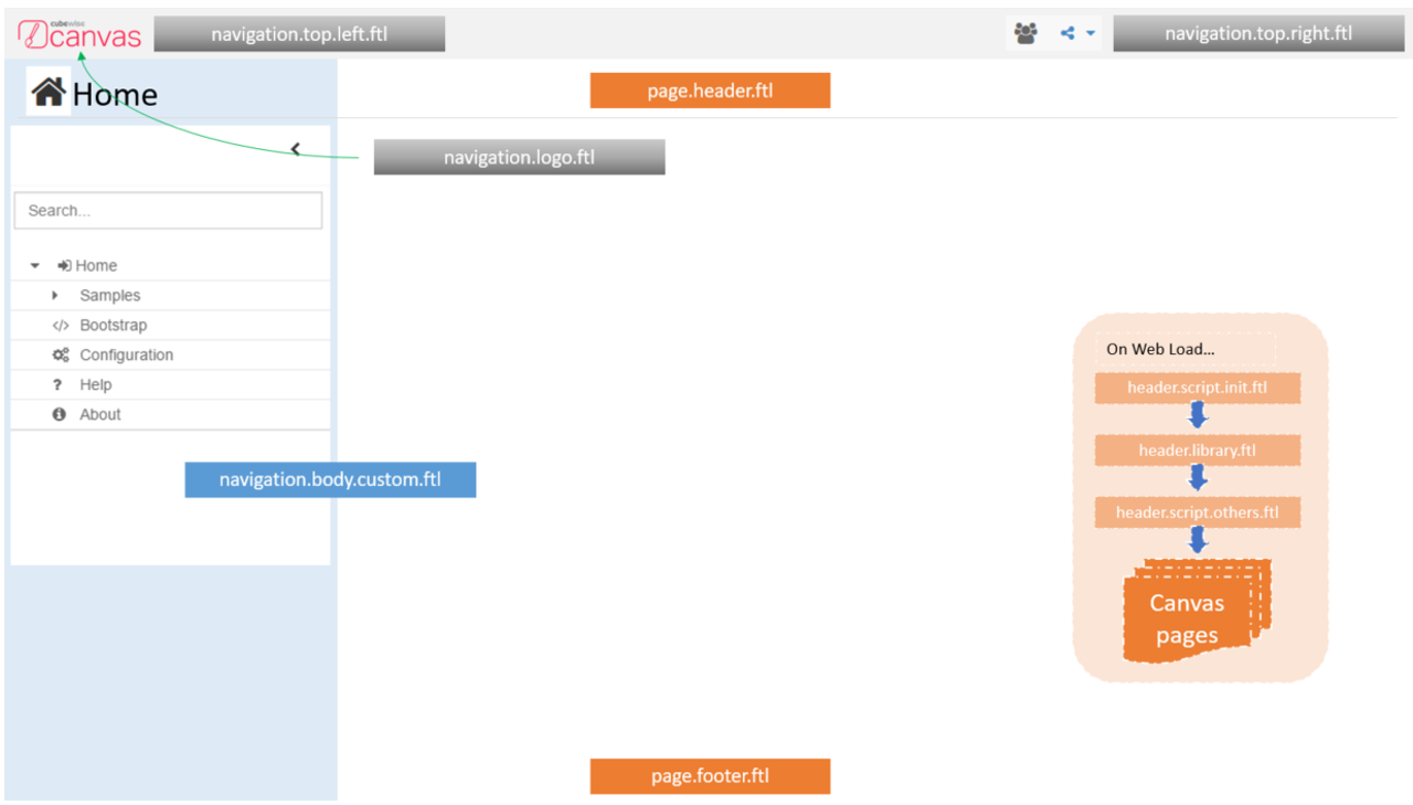 Important: If you upgrade your existing Canvas application to Canvas v1.2. You will have to migrate all changes you made from your index.ftl (WEB-INFpages) into the different new ftl files (WEB-INFpages). The index.ftl file which is used by the Canvas application is in WEB-INFpagessystem.